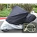 Factory Direct! Highway 500 XXLColor:Black top/Silver bottom-Heavy Duty 300 Denier polyester fabric -WeatherGuard polyester with UV treated coating -All seams are double top stitches with nylon thread and heat sealed -Heat resistant THERMO GUARD nylon on lower areas -Cloth chamois on windshield and fuel tank areas resist scratches -Flow through ventilation prevents condensation -Large, heavy duty grommets at center and front wheel for locking cover with bike -Includes matching backpack for easy storage and travel -*Comes with 45"cable and lock. -We offer One Year Warranty. Size XXL for Full Dress Touring Bike and Choppers (i.e. Honda Goldwing, Yamaha Royal Venture, Kawasaki Nomad and Harley Electra Glide, Street Glide, Road Glide and Road King with all accessories. Also, medium cruisers like Harley Heritage and Fatboy, Suzuki Boulevard C50, BMW K 1200 LT, Honda Goldwing, Honda VTX 1800, Harley Electra Glide, Harley Road Glide, Harley Road King, Kawasaki Vulcan 900 LT, Kawasaki Vulcan 1500 Classic, Suzuki C90, Triumph Rocket, Yamaha Roadliner, Yamaha Road Star Silverado, Yamaha Royal Star Tour, Yamaha Royal Star Venture, yamaha V Star Tourer, Kawasaki Vulcan 2000, Kawasaki Vulcan 2000LT, Kawasaki Vulcan LT Classic with windshields, saddlebags, sissy bars and engine guards) Dimension: 111"Lx45"Wx53.5"H