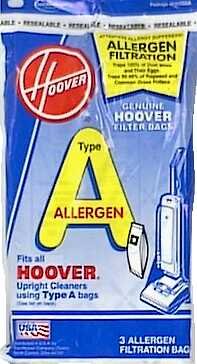 - Hoover Allergen Filtration Vacuum Bags, Type A, 1 Pack of 3